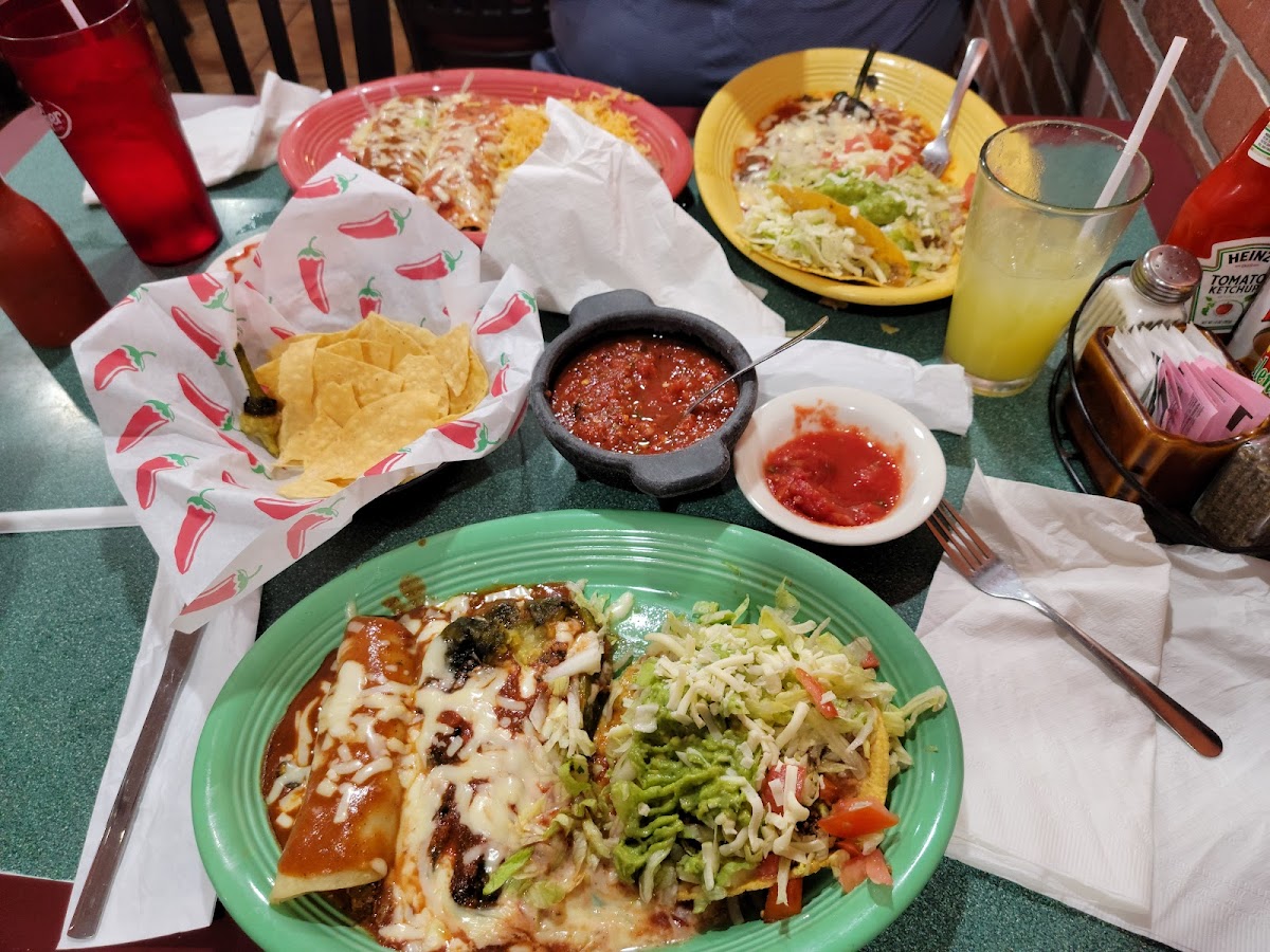 Portions are HUGE! One adult portion was eaten from each of the plates uploaded. There is enough remaining for two additional servings. Service is fast and friendly. Building and bathrooms are clean. Chips are fresh and salsa is mild. Prices are great for what you are getting. They also cater to changes made for children AND bring you extras (I asked for a huge plate of lettuce) without an extra charge. Definitely recommend.